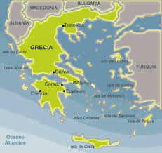 Grecia : (Hellas). Estado europeo situado en el extremo meridional de la península Balcánica, de relieve muy accidentado y montañoso. El clima es mediterráneo. Pertenecen a Grecia un gran número de islas esparcidas por los mares Jónico y Egeo (Rodas, Creta, Cícladas). Aprox. la mitad de la población vive cerca del litoral y es étnicamente homogénea; sin embargo, destacan las minorías turca y armenia. Los cultivos principal son trigo, vid y olivo. Dos cultivos industriales (algodón y tabaco) ocupan una creciente sup. Cerca de El Pireo se concentra la industria de transformación. La industria se halla en fase de desarrollo de su equipamiento energético. El sector terciario está sólidamente fundado en dos actividades: el turismo y la marina mercante. Miembro de la Unión Europea Política una República. Capital, Atenas. Ciudades principales: Salónica, Pátrai, Kavalla, Kalamai y Herakleión o Candía. Historia: - estuvo habitada primitivamente por población neolíticas; de la llegada de otro pueblo de origen oriental derivó, en el Eneolítico, la civilización egea (2600-1100 a. C.), durante la cual llegaron por el N los aqueos, que sometieron también a Creta cuya civilización asimilaron. Posteriormente sobrevino la invasión doria, que se asentó principalmente en Esparta y el Peloponeso. La aparición de una burguesía mercantil determinó la expansión colonizadora h. occidente (Magna Grecia) y la consolidación de la polis (ciudad-estado) como unidad política Atenas se convirtió en el principalmente centro cultural y económico Tras la gran lucha común de los gr. contra las invasiones persas (guerras médicas, siglo v a. C.) Atenas y Esparta se disputaron la hegemonía sobre - dando lugar a las guerras del Peloponeso, en las que se impuso la supremacía espartana, a la que sucedió la de Tebas. Más tarde, en la segunda mitad del siglo iv a. C., se impuso el poderío de Macedonia, que unificó - y formó un ámbito de civilización más vasto (Alejandro Magno, helenismo). Macedonia fue, a su vez, derrotada por Roma, la cual redujo a - a una provincia del Imperio (Acaya, 146 a. C.), absorbiendo su enorme patrimonio cultural. A la división del Imperio Romano, el país formó parte del de Oriente y, en la Edad Media, perteneció a Bizancio. Dominado desde el siglo xv por los turcos, se independizó en el siglo xix, apoyado por Inglaterra, Francia y Rusia